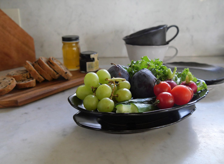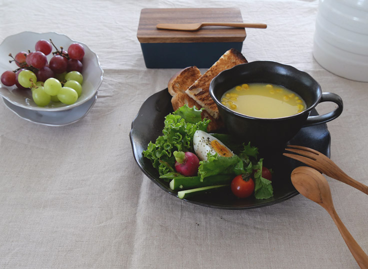 オーバルプレートSを受け皿にして、そのままテーブルへ。のせるだけで絵になるような佇まいは忙しい朝でなくとも嬉しい演出。