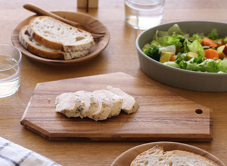 休日の朝ごはんなら、お肉類などおかずを盛ってカットしながらプレートとして使っても。