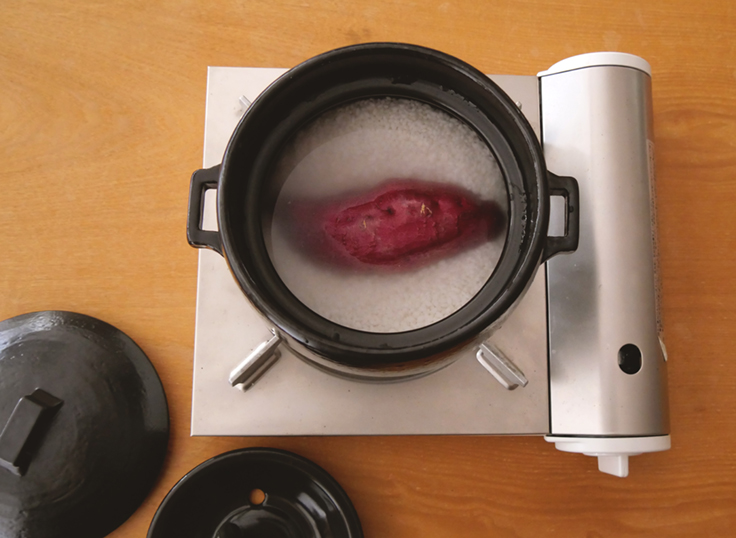 更に遠赤外線効果も手伝ってサツマイモ本体にも火が通りやすく、こうしたまるごと調理にとても向いています。今回はサツマイモですが栗ご飯なども得意です。