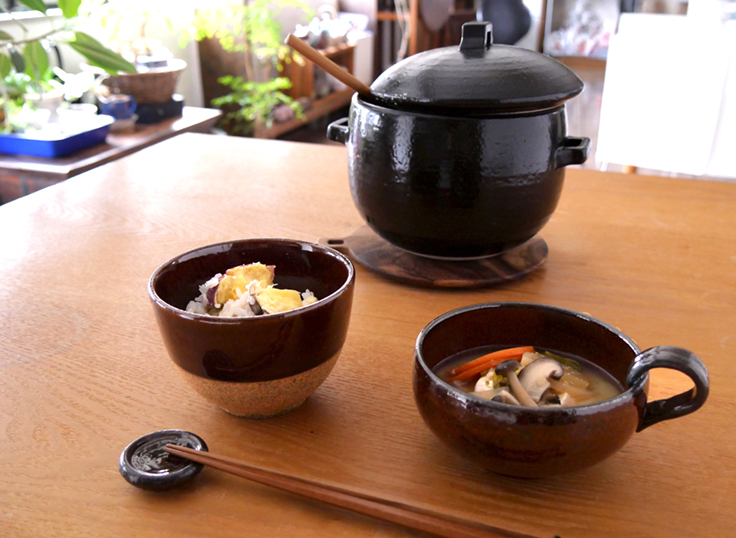 気の置けない仲間が集まってのシェアごはんにもおすすめ。ごはん土鍋は炊きたてをそのままテーブルへ。楽しい時間を演出します。
