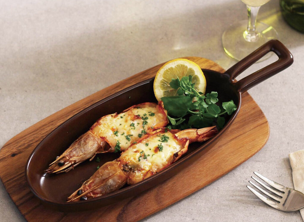 特別メニューもぱぱっとできます。海老も殻ごと焼くと特別メニューな雰囲気に。たっぷりのチーズとマヨネーーズでクリーミーに仕上げます。