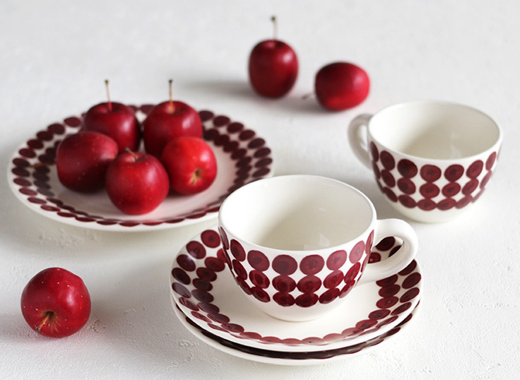 スイーツ時間もかかせませんね。ゆっくりと時間のとれるホリデーシーズンはカップ&ソーサーで丁寧にお茶をいれてみませんか。年末年始にふさわしく「紅白」なイメージでうつわにも「赤」をとりいれて。